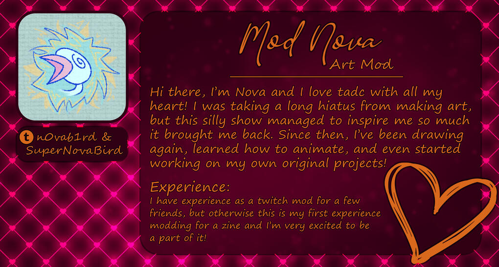 What are fanzines? - The term "fanzine" comes from the combination of "fandom" and "magazine". Fandom zines are similar to magazines, except they center around certain topics and themes, alongside catering to fan service (e.g. fanfiction, fanart, etc). For this specific project, the zine focuses around anything ragapom related from TADC.How will everyone communicate with eachother? - After acceptance emails are sent out, there will be a discord link to the buttons & bells server to accepted individuals.How do I join this zine? - Our schedule shows when our moderator & contributor applications open! There will be no exceptions to those deadlines.Can I still apply if I'm a beginner/intermediate artist? - Yes! This is a fan project, we will be considering as many people as our budget will allow for. You must have a portfolio ready before applying! This also means that you do not need an active social media presence in order to apply.Will shipping be made available to all countries? To the best of our ability, yes! This does not mean we will be able to cover any additional shipping & handling fees, but we are welcome to shipping this project out anywhere!How will artists/writers on this project be compensated? Since this project is for charity, as courtesy we will be providing free physical copies alongside merchandise to every contributor on this project! Hard work deserves to be recognized and we intend to give back to everyone who works on this project.Will this be a polyshipping project? - While this is a TADC zine, we will be focused purely on the relationship between Ragatha and Pomni.How much will this zine cost? - We weigh this factor out based on the amount of interest checks alongside the statistics of what everyone desires. Interest checks close september 20th! Make your voice be heard!